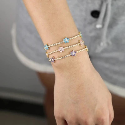 ヨーロッパとアメリカの新しい花インレイジルコニウムフルジルコニウムブレスレットピンク紫ファッション多用途女性のブレスレット