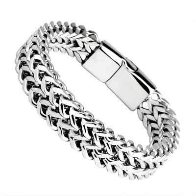 メンズステンレススチール編み手首、磁気バックル付き - カジュアル、プラチングなし