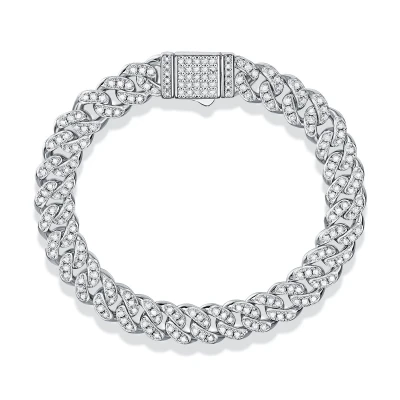 8mm ヨーロッパ&アメリカンファッション新作 S925 スターリングシルバー ヒップホップ キューバンヘリエレ 男女兼用ブレスレット